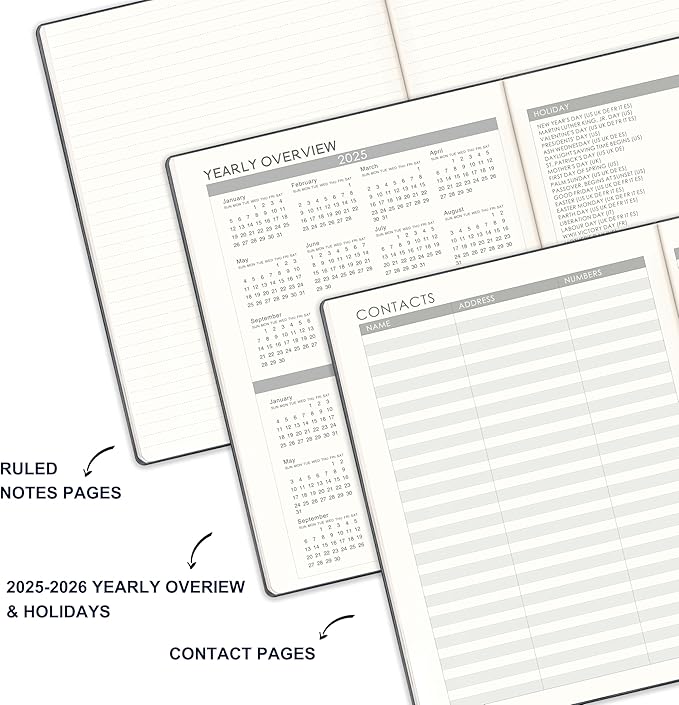 - ✨ Durable soft leather cover, excellent texture. 2025-2027 yearly holidays lets you master the holidays clearly. The planner offers unruled monthly pages/ruled weekly layouts for detailed planning.