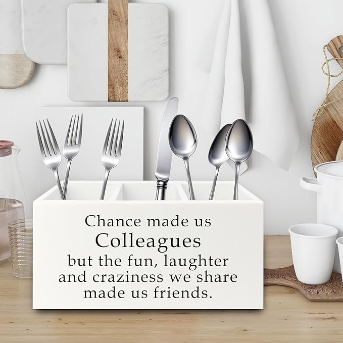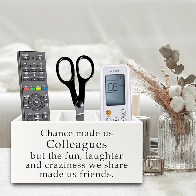 Colleague Gifts Pen Pencil Holder Organizer for Desk, Work Bestie Friends Gifts for Women, Coworker Friend Gift Wooden Box Sign for Home Office Desk Tabletop Decorations