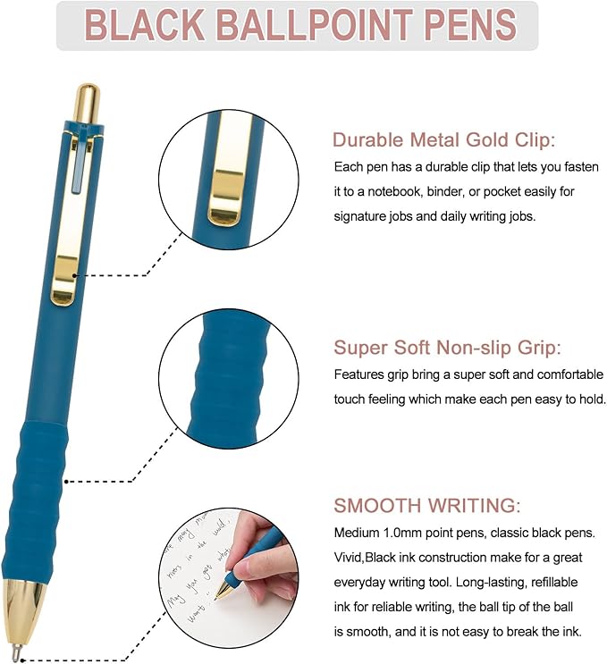 - Super Soft Non-slip Grip: Features grip bring a super soft and comfortable touch feeling which make each ballpoint pen easy to hold