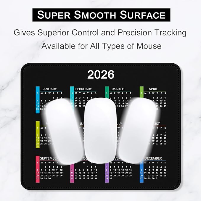 2026 Calendar Mouse Pad, Square New Year 2026 Mousepad 10.2 x 8.3 Inch, Stitched Edge Anti-Slip Waterproof Rubber Computer Mat for Office, Gaming, Laptop, New Year Office Supplies Gift, Black
