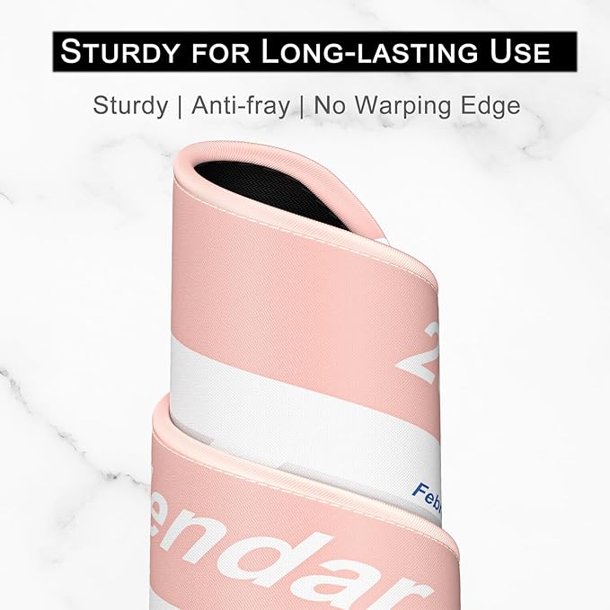2026 Calendar Mouse Pad, Square New Year 2026 Mousepad 10.2 x 8.3 Inch, Stitched Edge Anti-Slip Waterproof Rubber Computer Mat for Office, Gaming, Laptop, New Year Office Supplies Gift, Pink
