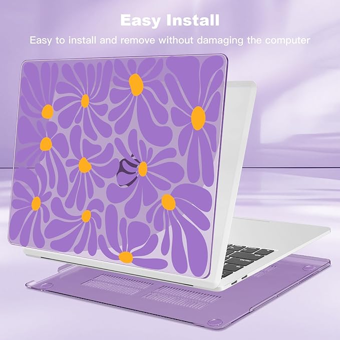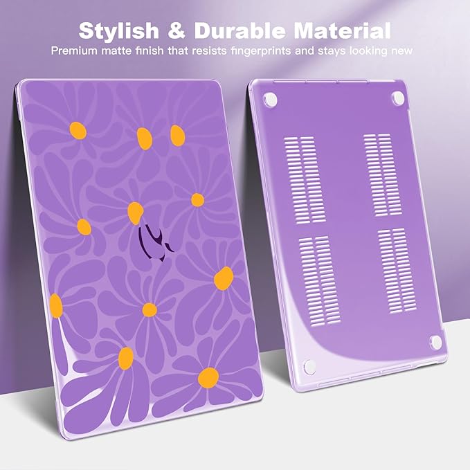 Teryeefi for MacBook Pro 13 inch Case A2338 M2 M1 Chip A2251 A2289 A2159 A1989 A1706 (2025 2024 2023 2022-2016), Hard Shell with Keyboard Cover & Type C Adapter - Abstract Purple Flower 134