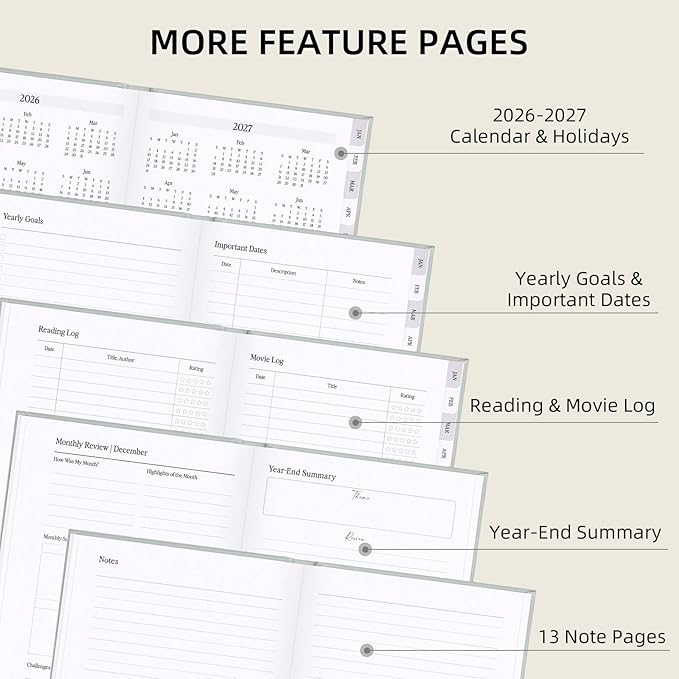 - Holidays, Notes & Extras - This planner includes holiday calendars, yearly goals pages, important dates pages, and additional notes pages to support all your scheduling needs.