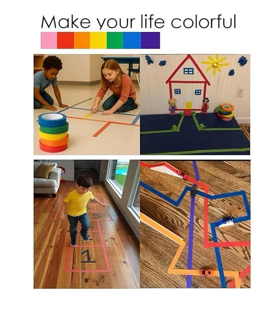 - 7 Roll Bright Colored Masking Tape: Include 7 Vibrant Colors: Pink, Red, Orange, Yellow, Green, Blue, Purple. Each 72 Ft long with 1 Inch Thickness. Great for Art & Craft, DIY, School Projects, Labeling, Code, Kids games, Teachers Craft and More. Those painters tape bring more color for your life.
