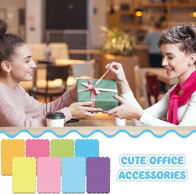 - Package Contents: the package contains 8 colorful scalloped sticky notes, 8 colors, 1 book for each color, 30 sheets per book, a total of 240 sheets, each sheet is about 10 x 15 cm/ 4 x 6 inches; Adequate quantity and suitable size can easily meet your daily writing needs, you can also share with family and friends