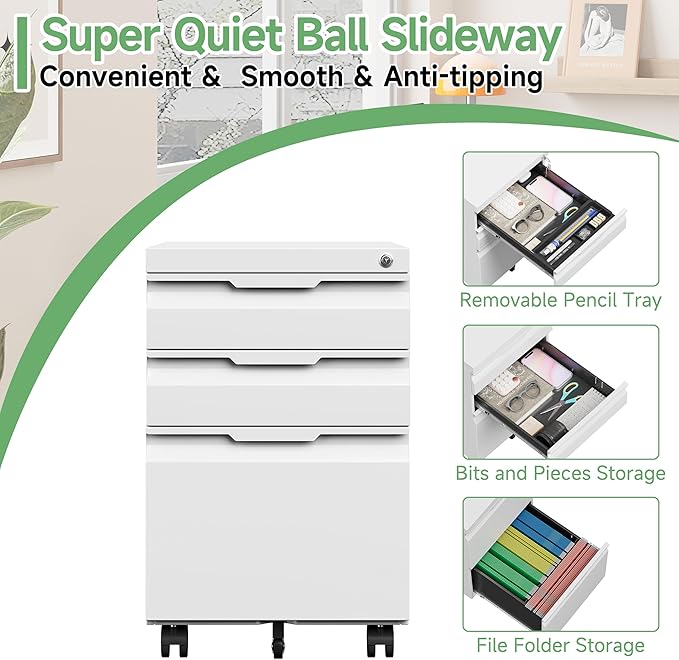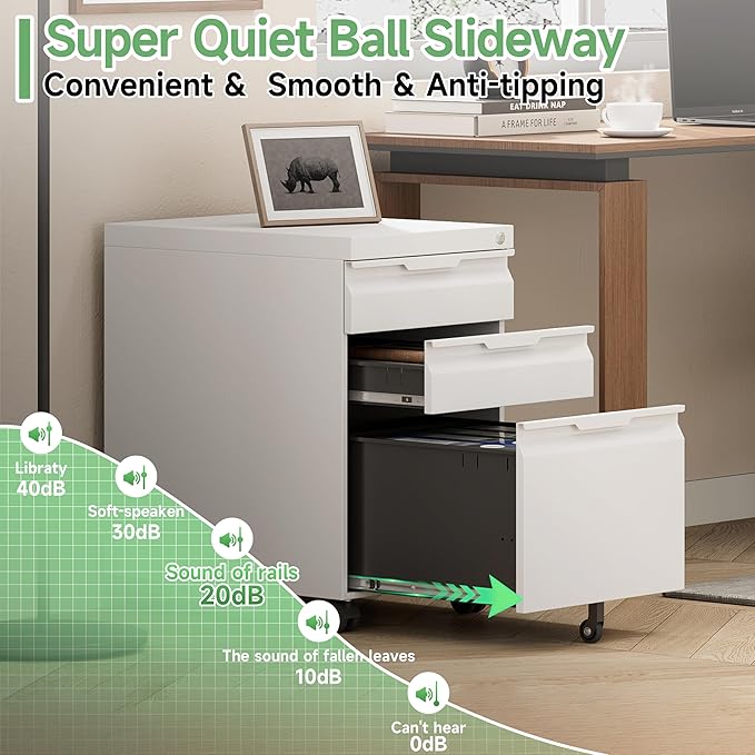 - 【Quiet & Smooth Slide Rails】 No more struggling to open jammed drawers or stuck files with each drawer equipped with precision ball-bearing glides for easy opening, closing, and everyday use.Low noise levels allow you to work from home without worrying about disturbing your family's rest.