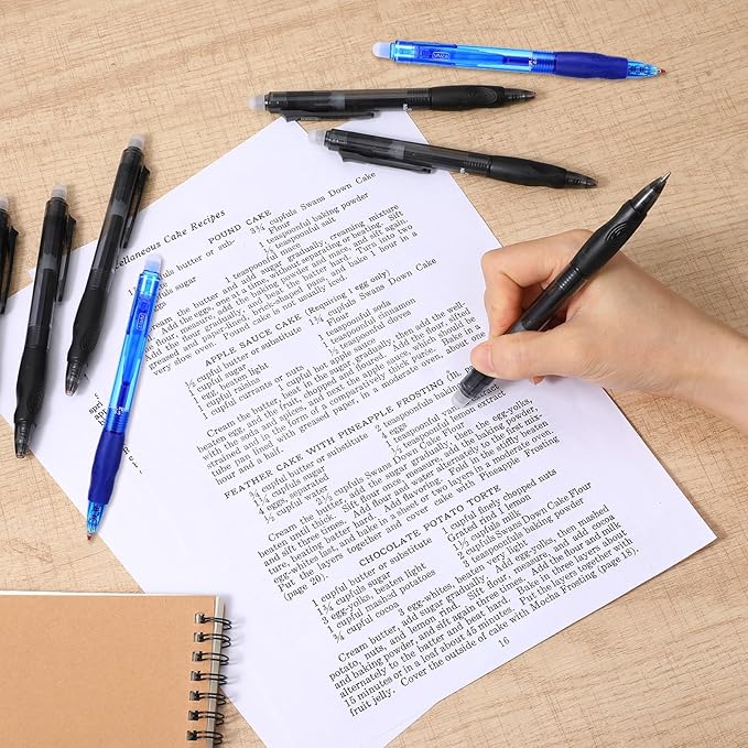- 【Smooth Gel Ink That Erases Cleanly】You'll love how these erasable ink pens deliver vibrant, skip-free writing while allowing you to correct mistakes effortlessly. The special thermo-sensitive ink disappears with the built-in eraser, giving you perfect documents every time without white-out mess
