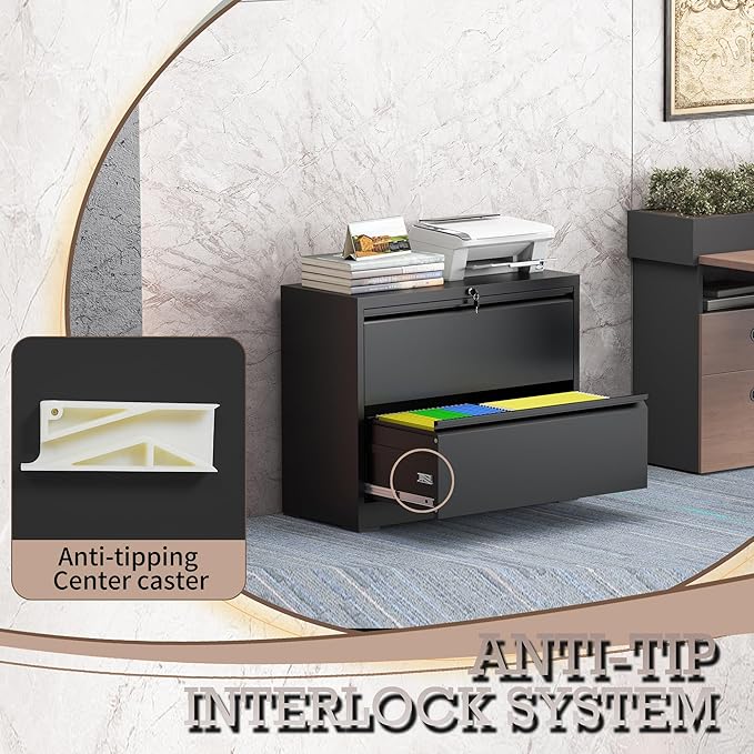 - 【Enhanced Stability and Safety】Our lateral filing cabinet features an anti-tip interlocking system that allows only one open able drawer at a time, preventing multiple drawers from opening at the same time, maintaining balance and preventing accidental tipping. This is especially important for homes with children or in busy offices.
