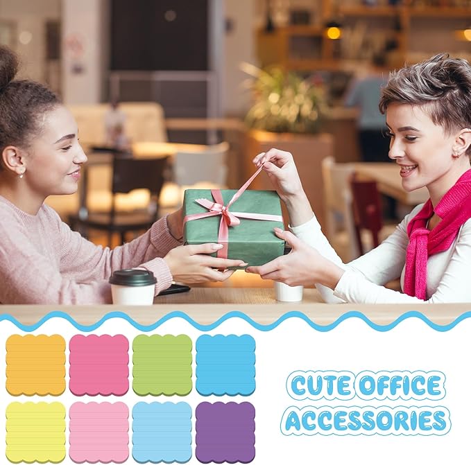 - Package Contents: the package contains 8 colorful scalloped lined sticky notes, 8 colors, 1 book for each color, 30 sheets per book, a total of 240 sheets, each sheet is about 7.6 x 7.6 cm/ 3 x 3 inches; Adequate quantity and suitable size can easily meet your daily writing needs, you can also share with family and friends