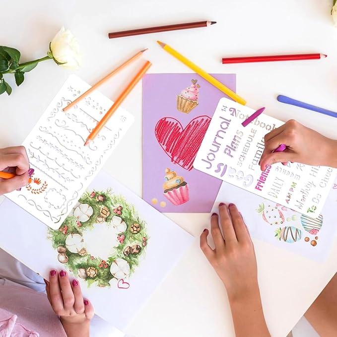 - 【Durable & Lies Flat: Superior 0.25mm PET Plastic】Flexible and Warp-Resistant, this Journaling Stencils Lie Perfectly Flat for Crisp Tracing. Easily Washable and Designed for Long-Term Use, They Won't Crack or Tear Like Inferior Alternatives.