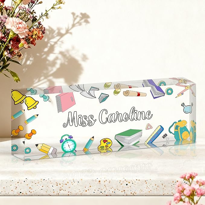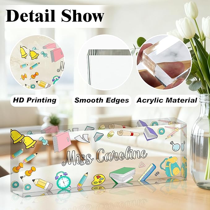 - Personalized Desk Name Plate: We employ advanced UV-cured ink printing technology to ensure text and patterns remain as vibrant as new, resistant to wear, fading. The edges are polished with precise rounded corners, providing a smooth touch without sharp edges Crafted from premium high-density acrylic material, it boasts crystal-clear transparency, enduring luster, and resistance to yellowing, maintaining its pristine clarity and visual brilliance long after long term use.