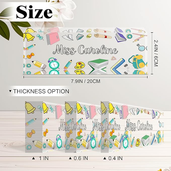 - Unique Appreciation Gift: We offer a range of designs from minimalist to classic styles, effortlessly matching the aesthetic needs of different office environments. Standard dimensions: 7.9 inches (L) x 2.4 inches (H), with three thickness options: 0.4 inches, 0.6 inches, and 1 inches. Whether used for front desk signage, executive desk, or as personal commemorative decorations, it can meet all needs.