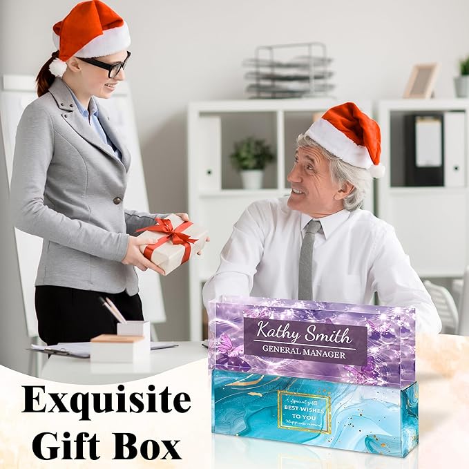 - The Perfect Office Gift: Whether expressing gratitude to colleagues, honoring mentors, motivating team members, or rewarding partners, this gift seamlessly blends sincere sentiment with refined taste. The printed name and title appear exquisitely against the crystalline acrylic material, making your gift stand out among countless options and become a cherished, unique keepsake.