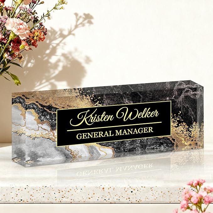 - Made & Shipped in the USA: Crafted with premium local materials and advanced printing technology, this desk name plate is produced and shipped right here in the USA. More than just a clear desk identifier, it is a decorative piece that blends functionality with aesthetics, adding a modern and professional touch to any office or home environment. Choose this nameplate to convey thoughtfulness and sincerity in a dignified and distinctive way.