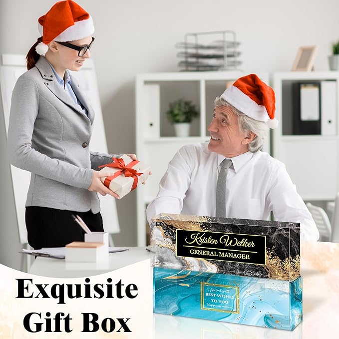 - The Perfect Office Gift: Whether expressing gratitude to colleagues, honoring mentors, motivating team members, or rewarding partners, this gift seamlessly blends sincere sentiment with refined taste. The printed name and title appear exquisitely against the crystalline acrylic material, making your gift stand out among countless options and become a cherished, unique keepsake.
