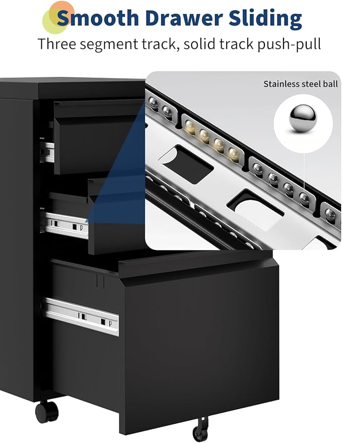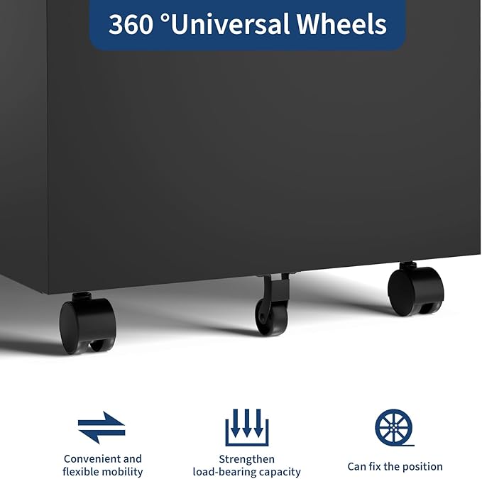 - ENHANCED SAFETY - The mobile file cabinet includes a single locking mechanism with two keys, securing all three drawers to protect your important documents, while an interlocking system ensures only one drawer opens at a time to prevent tipping
