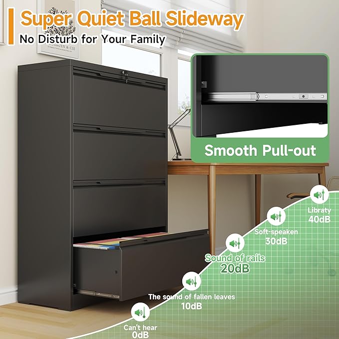 - 【Quiet & Smooth Slide Rails】 No more struggling to open jammed drawers or stuck files with each drawer equipped with precision ball-bearing glides for easy opening, closing, and everyday use.Low noise levels allow you to work from home without worrying about disturbing your family's rest.