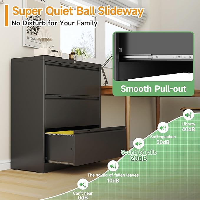 - 【Quiet & Smooth Slide Rails】 No more struggling to open jammed drawers or stuck files with each drawer equipped with precision ball-bearing glides for easy opening, closing, and everyday use.Low noise levels allow you to work from home without worrying about disturbing your family's rest.