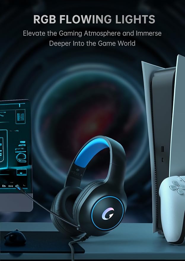 CM7002 Gaming Headset for PS5, PS4, PC, Mac, Switch, Xbox Series, Surround Sound RGB Gaming Headphones with Noise Canceling Microphone, 50MM Dynamic Drivers, 3.5MM Audio Jack, Blue