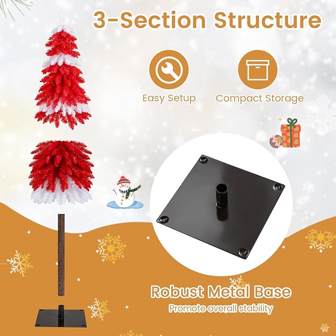 Happygrill 5 FT Artificial Christmas Tree, Candy Cane Xmas Tree with 301 Branch Tips, 100 Warm White LED Lights & Metal Base, Holiday Decoration Tree for Party Carnival
