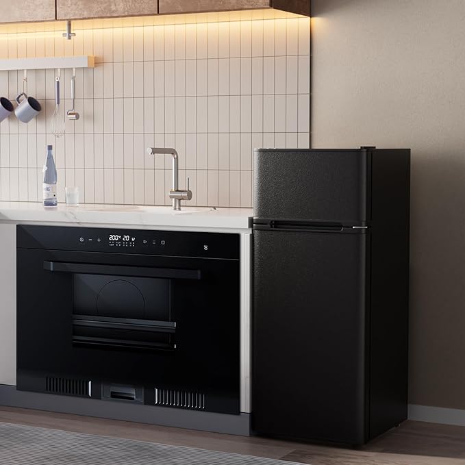 - 【Dual Cooling Zones with Large Capacity】This refrigerator features a space-saving design ideal for small spaces like apartments, offices, or dorms. Despite its compact footprint, it offers a generous 4.5 cubic feet of capacity. The convenient top-mounted freezer provides dedicated space for frozen goods, while the larger fresh food compartment keeps your daily items neatly organized and easily accessible.